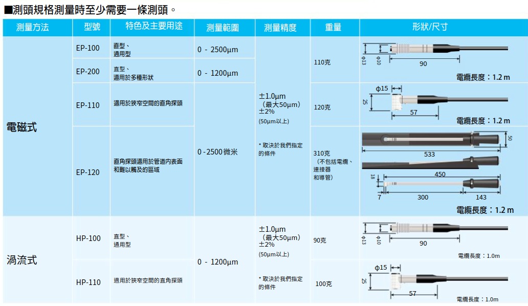 | 選配項目 | 各種Fe/NFe探頭(必備)、標準片(除配件以外的厚度)、膜厚測定台LW-990、軟質攜帶包、藍芽接收器VZC6、校準(校準證書、校準紀錄、追朔流程圖) | |